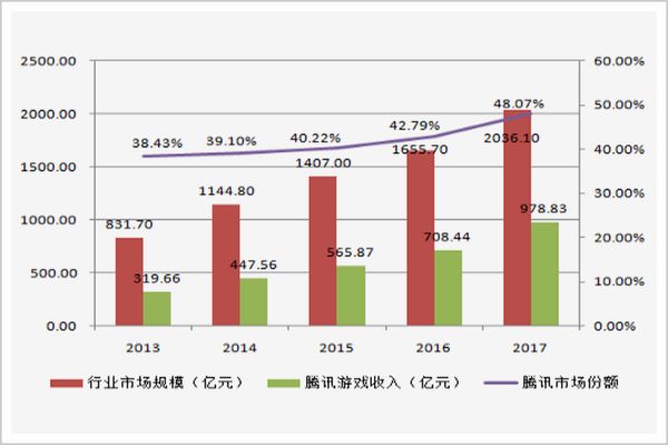 ▲2013-2017年腾讯游戏收入情况2003年,在要不要做游戏的问题上,腾讯的创始人内部发生分歧。虽然马化腾认定网游是个不可错过的机会,但也有高管直言:腾讯还没有做游戏的sense(感觉)。