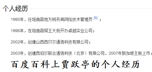 我们可以看到,四大牛人毕业于什么大学,都写得一清二楚,甚至连童年、中学时代都写了很多。唯有贾跃亭,履历是从22岁开始的。那么,他有什么不想说的呢?