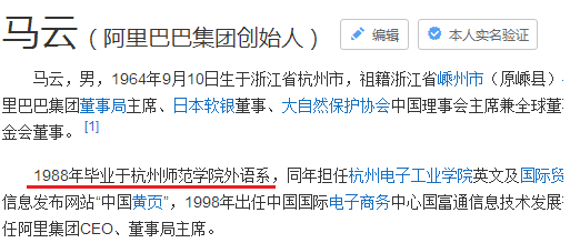 英雄不问出处,马云的毕业学校是杭州师范学院,也远不是中国一流大学,二流都算不上,但是马云敢写。虽然贾跃芳毕业于什么学校对我们并不重要,但是贾跃亭为什么不把他之前的求学经历写上呢?