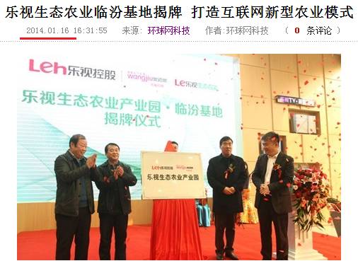 贾跃亭发迹后,在家乡也建立了时髦产业。据乐视生态农业产业园临汾基地的官网资料,2013年12月5日落地临汾尧都区,包括12个智能连栋温室、43个日光温室大棚,以及2000余亩的苗木中心等。